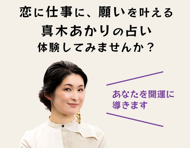 恋に仕事に人生に、願いを叶えるための占い。真木あかりがあなたのお悩みにズバリお答えし、開運へと導きます。