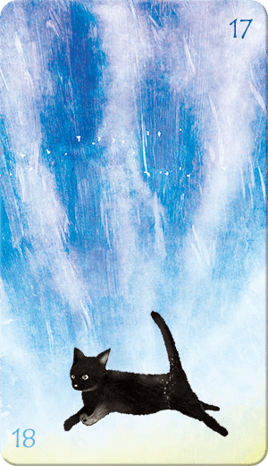 というのも、この世界に変革をもたらす星の恩恵がどんな形であなたに表れるかを示すカードには、「爽快な青空の下を軽やかに走っていく猫」の姿が描かれています!